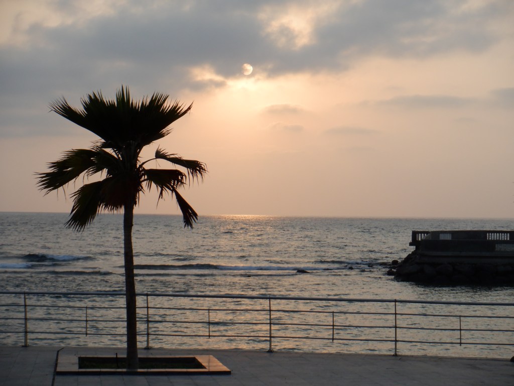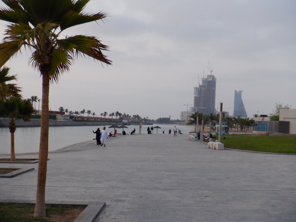 Ponieważ sprawdzanie zajęło niewiele ponad pół dnia, a powrót był wieczorem, to pojechalim nad morze. Czerwone. Nad morzem zmieniło się od ostatniego razu (opisanego w ósmym wpisie), miejsca, które wtedy były udostępnione spacerowiczom są w przebudowie, a to co było przebudowywane – zakończono i oddano do użytku. Na końcu nadmorskiej drogi zaś, krótko przez torem wyścigowym, powstał nadmorski deptak ze ścieżkami rowerowymi. Można tam spotkać mnóstwo ludzi – spacerują, biegają, jeżdżą rowerami – w strojach swoich i zachodnich, w chustach i w czapkach z daszkiem. Niesamowite uczucie i do niedawna niestpotykane. A to wszystko upstrzone palmami z falującym morzem w tle.