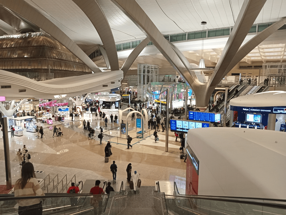 Ponieważ współcześnie dworce lotnicze zarabiają niekoniecznie na obsłudze podróżnych, a bardziej na wynajmie powierzchni handlowych, w których wciska się podróżnym niepotrzebne rzeczy w niebotycznych cenach, nowy dworzec zaopatrzono w uwydanione stoiska drogich marek wraz z krzykliwymi wystawami. W przeciwieństwie do Kataru, nie stają się one przeszkodą dla podróżnych w dotarciu do peronu odjazdowego.