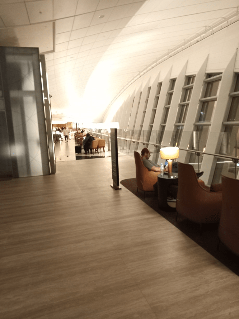 Poczekalnia biznes i pierwszej klasy, choć nie otwarta w całości robi przyjemne pierwsze wrażenie. Są lodówki z napojami, oczywiście wystawione na szwedzkim stole różne potrawy, dla tych, którym mało posiłków w samolocie. Poczekalnia zajmuje trzy piętra, więc miejsca wystarczy dla wszystkich, również w ustępach, które choć są niewielkie, jest ich kilka na różnych poziomach. I nie warto iść do pierwszego, tylko wjechać lub wejść po schodach na kolejne piętro. No i można nabrać się wody, za tę, którą nam zabrali przy prześwietlaniu toreb.